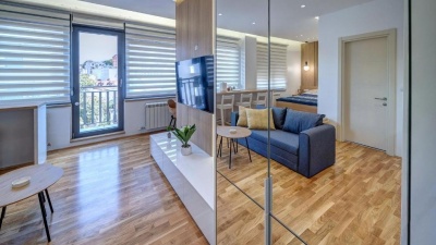 If you are looking for a perfectly clean studio apartment for three, with a terrace in a new-build, close to King Alexanders Boulevard - your choice should be, without a grain of doubt ROSE. The small terrace treasures an enchanting view over the Zvezdara Forest and the rooftops of Belgrade.